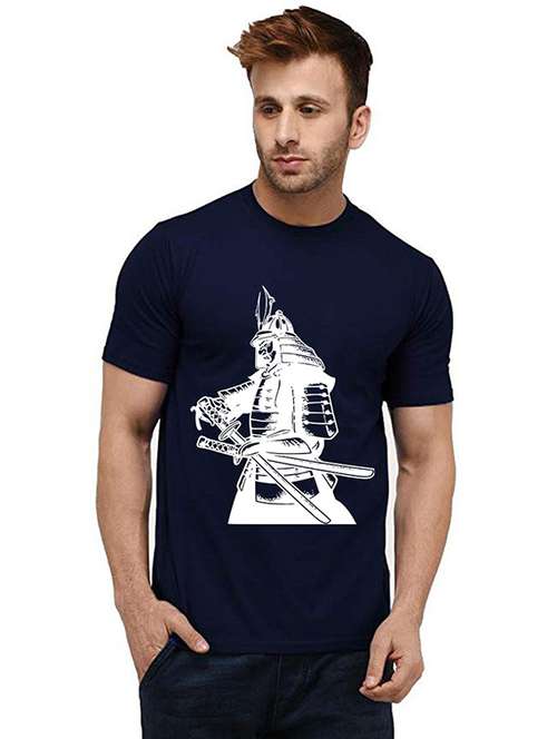 - » navy blue front printed casual t-shirt