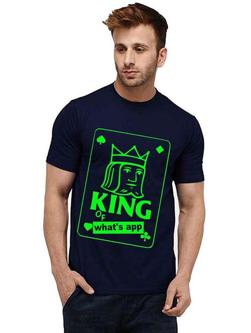 navy blue front printed casual t-shirt