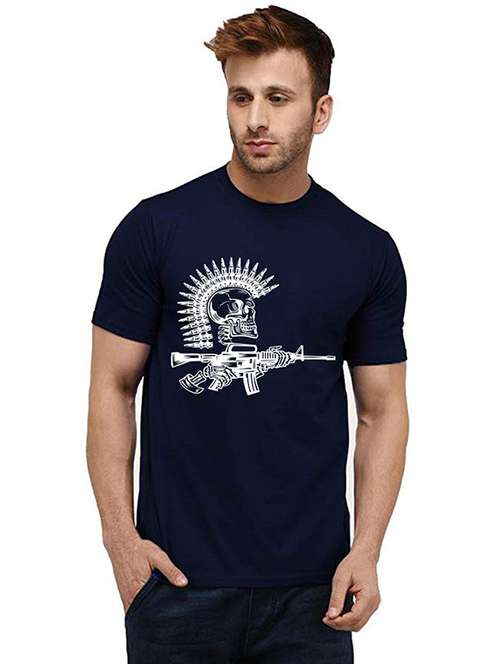 navy blue front printed casual t-shirt