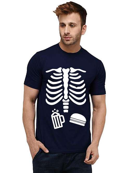 navy blue front printed casual t-shirt