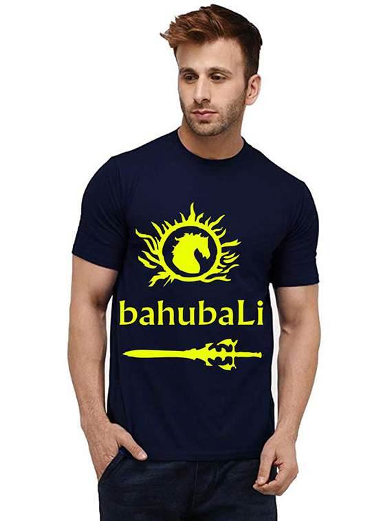 navy blue front printed casual t-shirt