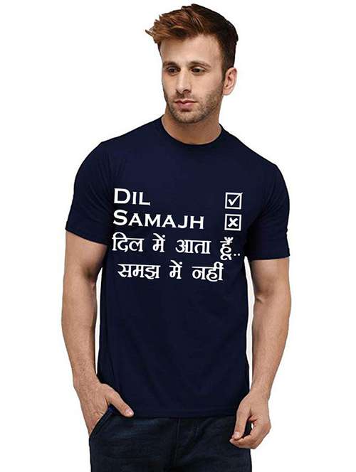 men round neck front print cotton t-shirt