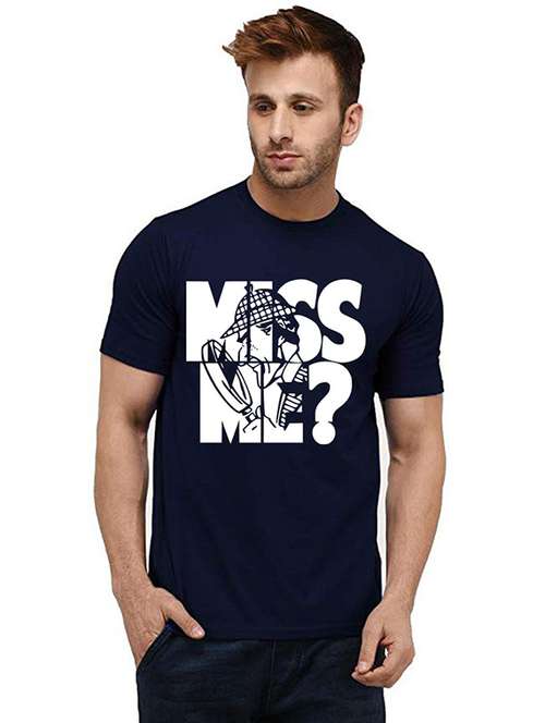 - » men round neck front print t-shirt