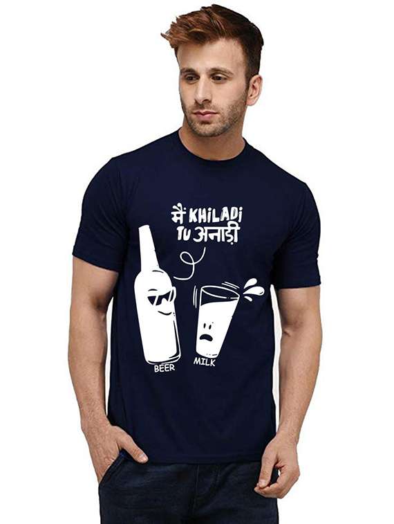 - » men front print crew neck t-shirt