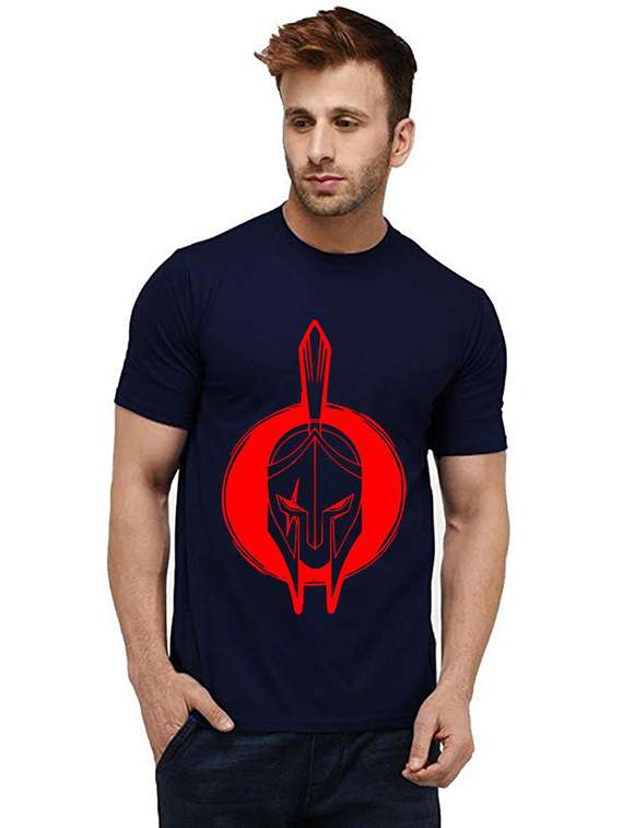 men round neck front print cotton t-shirt