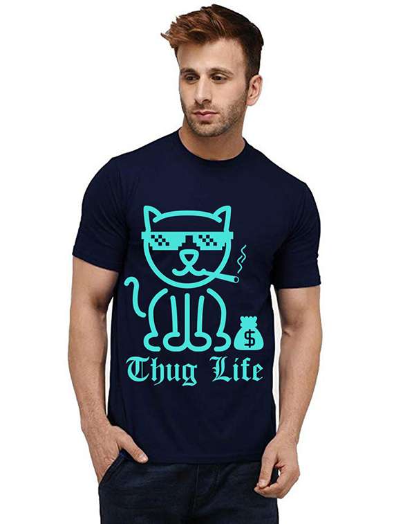 men round neck front print cotton t-shirt - 20984806 - Very Small Image - 1
