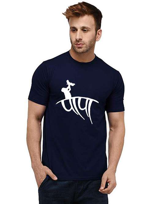 men round neck front print cotton t-shirt