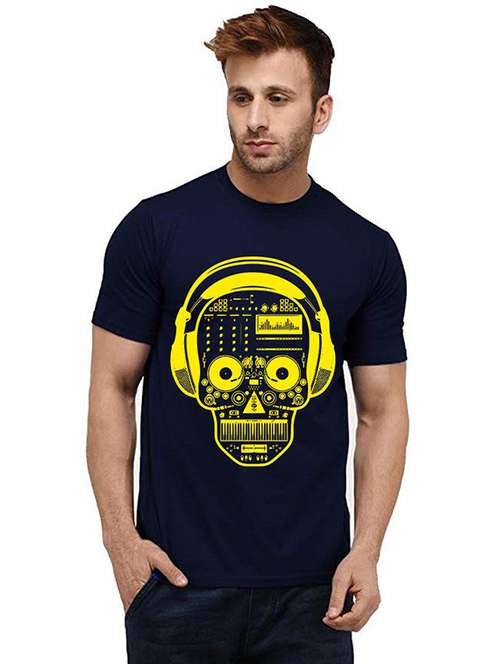 navy blue front printed casual t-shirt