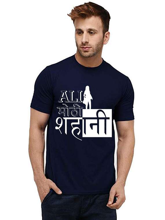 men round neck front print cotton t-shirt