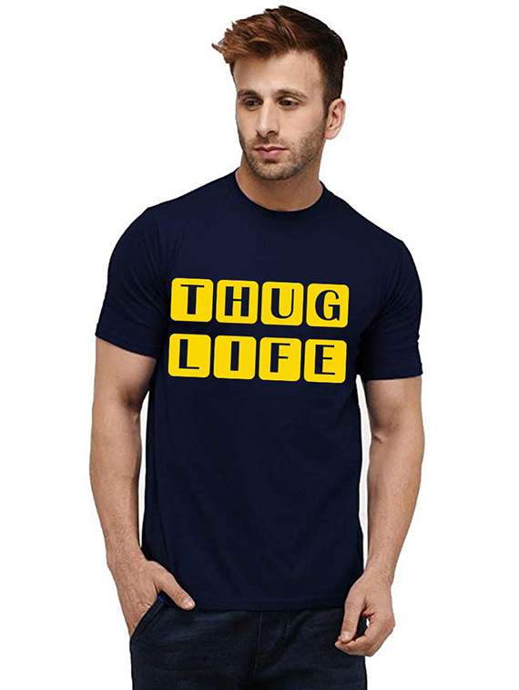 navy blue front printed casual t-shirt
