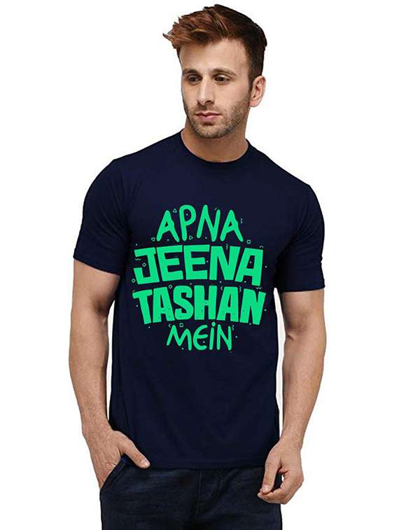 navy blue front printed casual t-shirt