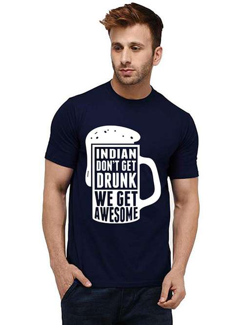 navy blue front printed casual t-shirt