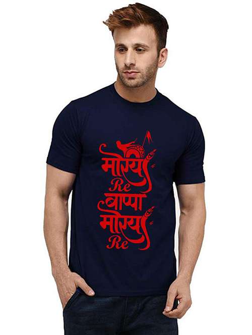 - » men round neck front print t-shirt