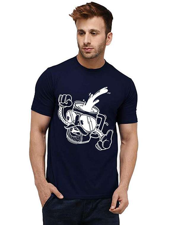 navy blue front printed casual t-shirt