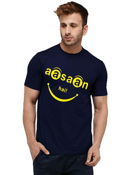 navy blue front printed casual t-shirt