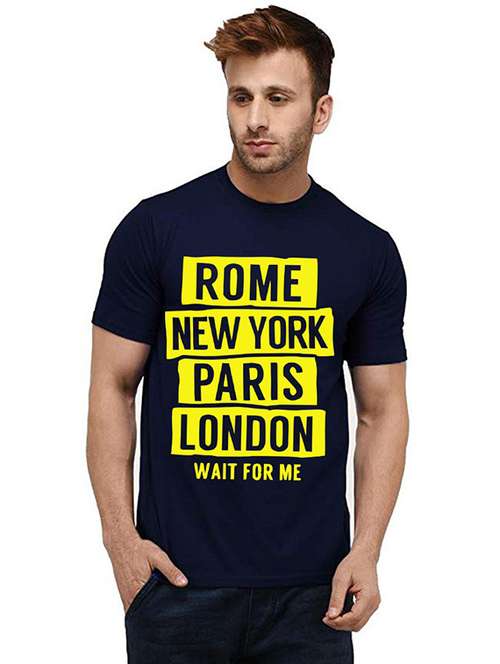 navy blue front printed casual t-shirt