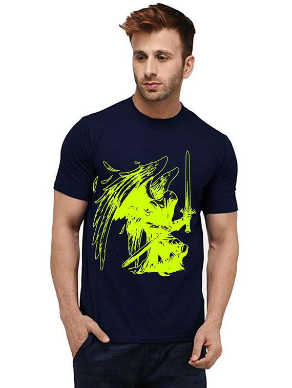 men round neck front print cotton t-shirt - 20985418 - Very Small Image - 1
