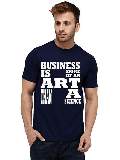 - » navy blue cotton front print tshirt