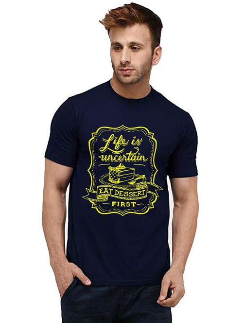 navy blue front printed casual t-shirt