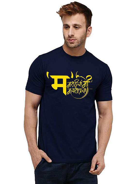 navy blue front printed casual t-shirt - 20985752 - Very Small Image - 1