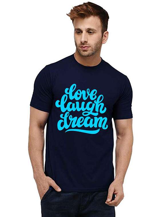 navy blue front printed casual t-shirt