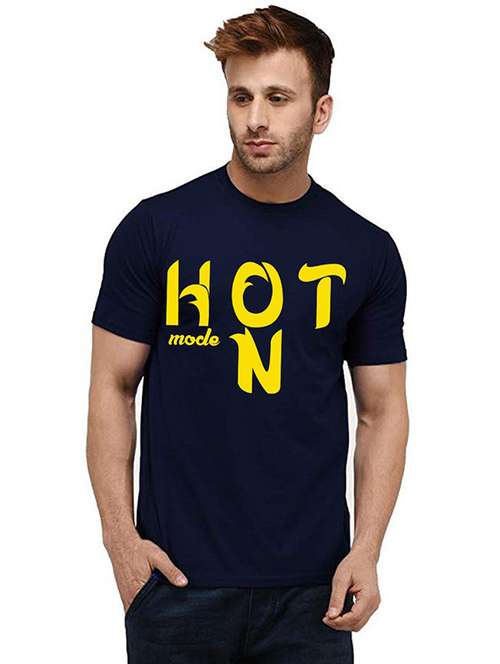 men round neck front print cotton t-shirt