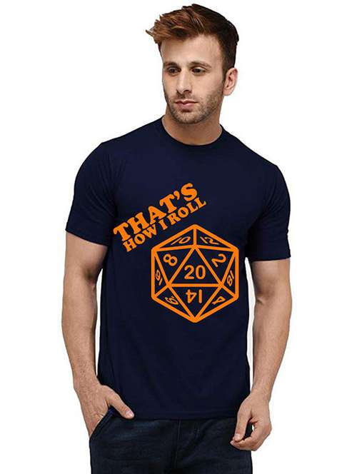 navy blue front printed casual t-shirt