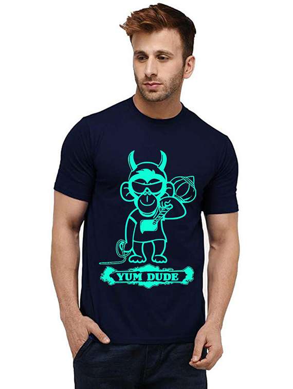 - » men round neck front print t-shirt