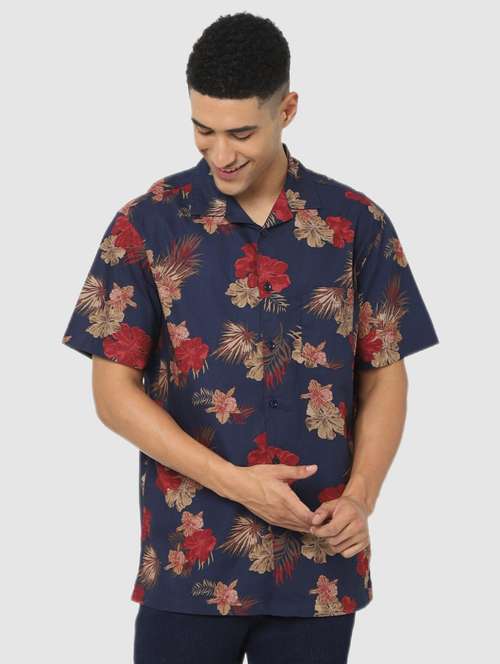 - » navy blue printed casual shirt