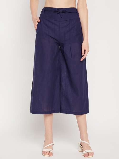 navy blue mid rise solid wide leg trouser