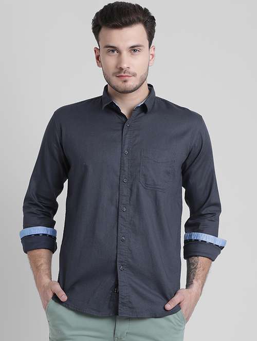 navy blue solid casual shirt