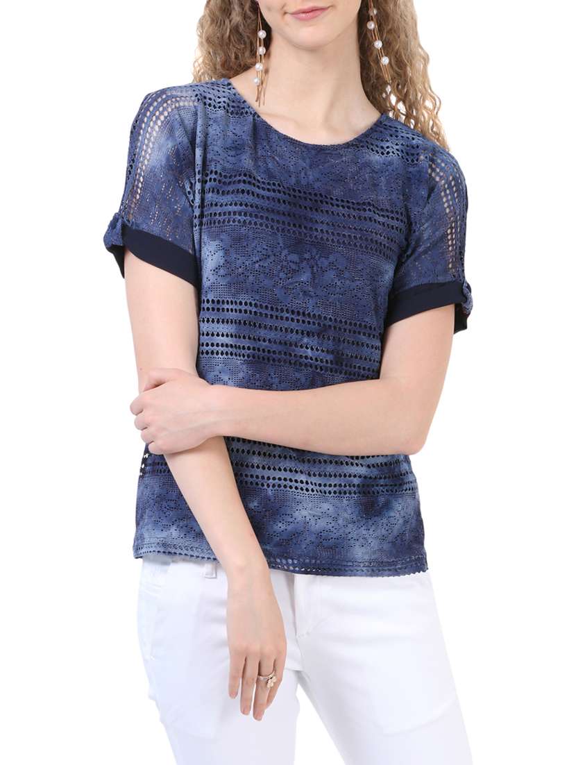 - » navy blue printed cotton regular top