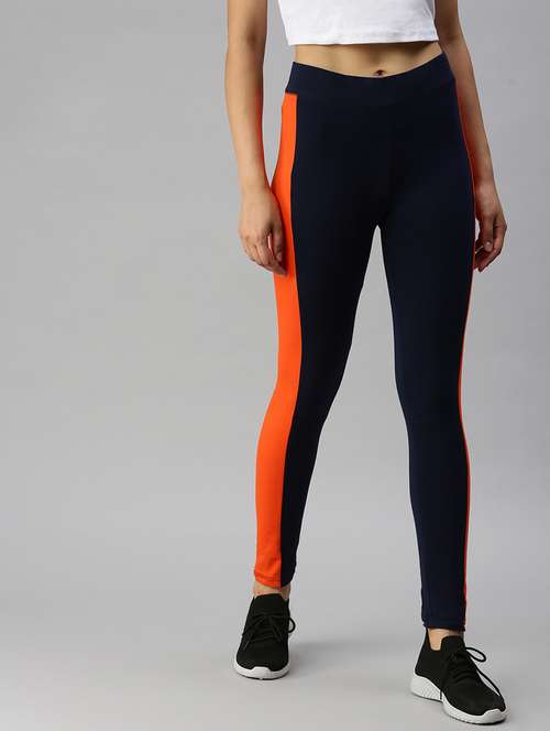 - » navy blue color block ankle length active wear tights