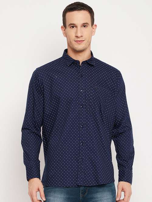 navy blue printed casual shirt