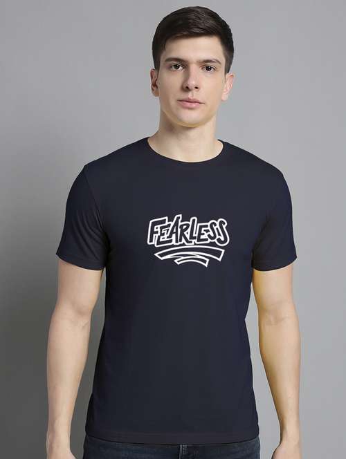 men navy blue cotton chest print t-shirt - 20295702 - Very Small Image - 1