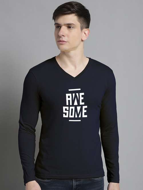 navy blue cotton chest print tshirt