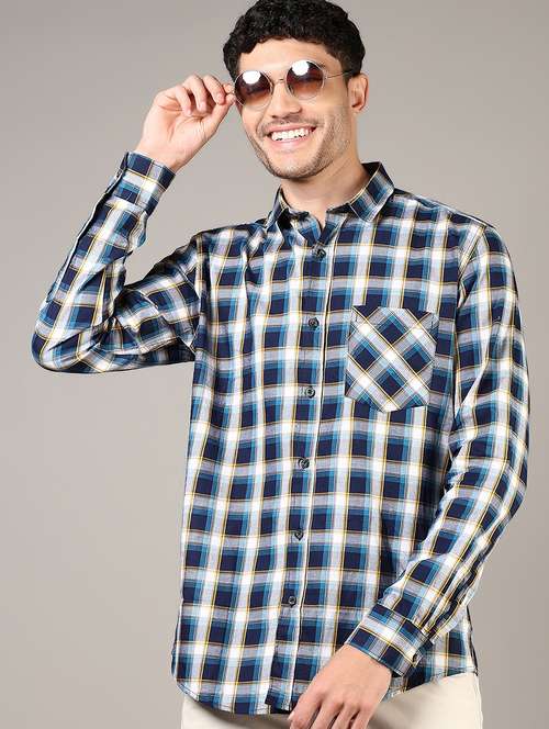 - » men checkered long sleeve regular fit casual shirt