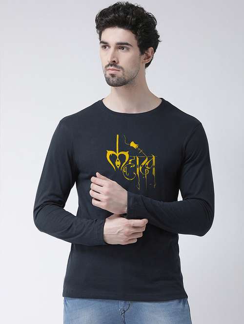 men round neck chest print t-shirt
