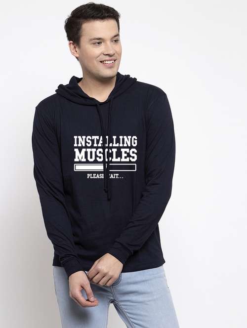 - » navy blue cotton chest print sweatshirt