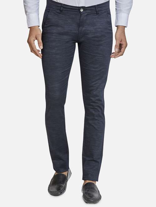 - » navy blue textured flat front casual trouser