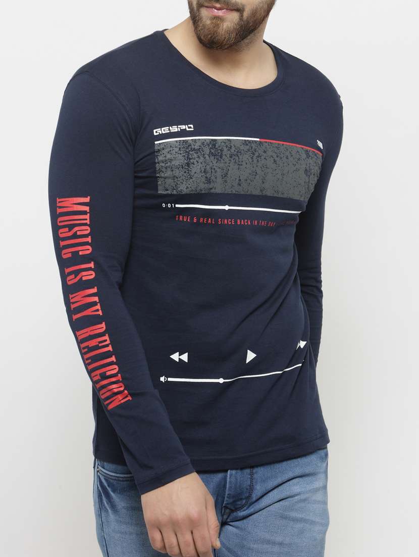 navy blue cotton front print t-shirt