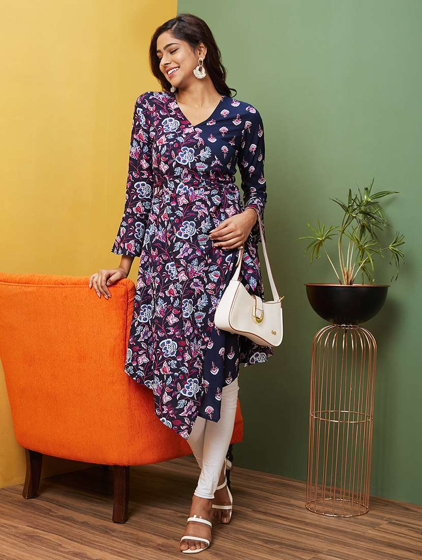 - » navy blue floral printed a-line kurta