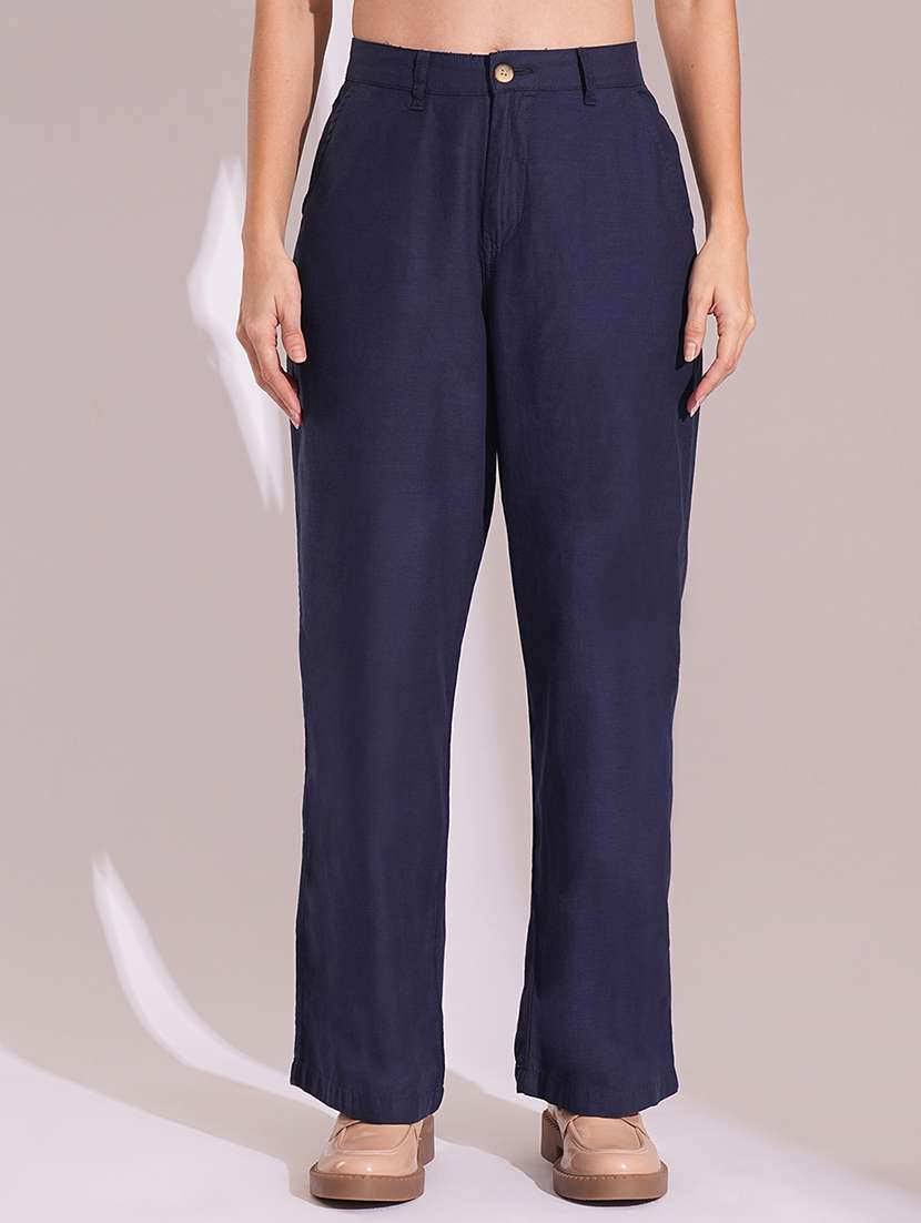 Step up your style game with these Navy Cotton Formal Trousers. Designed for comfort and sophistication, they feature a flattering high-rise fit and a chic wide-leg cut, crafted from soft cotton for a polished yet breathable feel. Perfect for the office or any formal occasion, these trousers offer a versatile and timeless addition to your wardrobe.