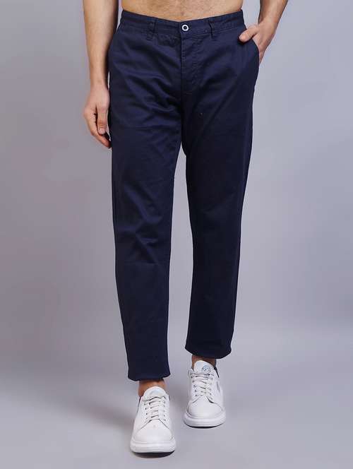 - » navy blue solid flat front casual trouser