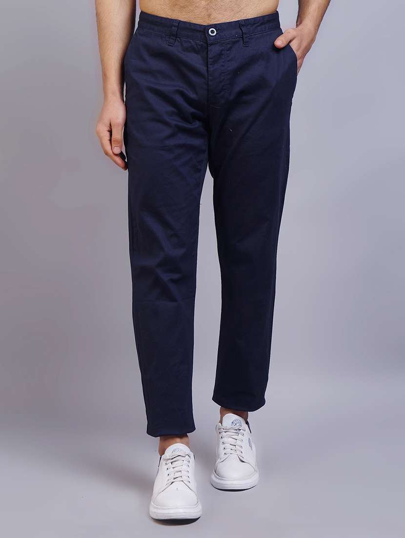 navy blue solid flat front casual trouser