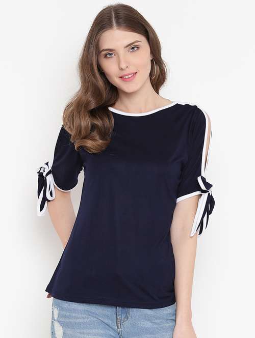 - » navy blue solid cotton top