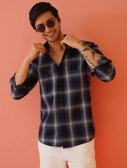 - Be a head turner by wearing this casual shirt from Indian Needle and grab it in navy blue colour.