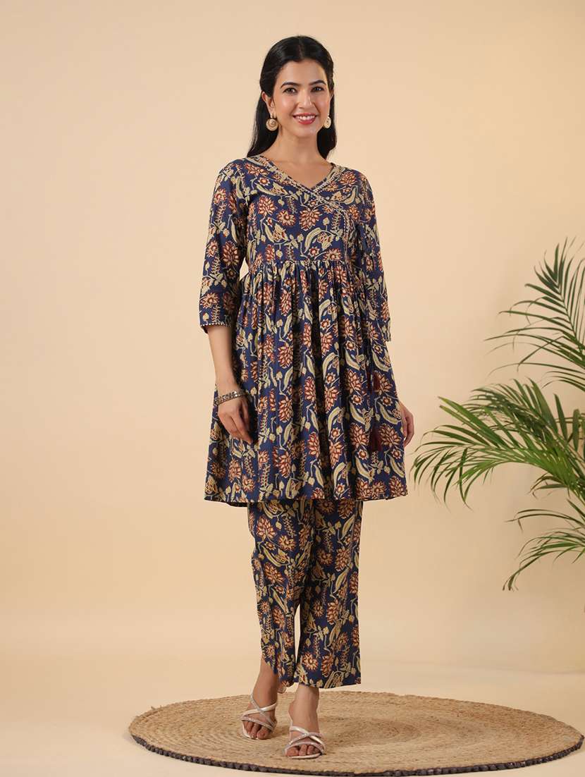 - » women navy blue ethnic motif printed co-ord set