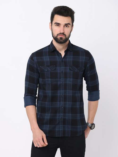 - » navy blue cotton casual shirt