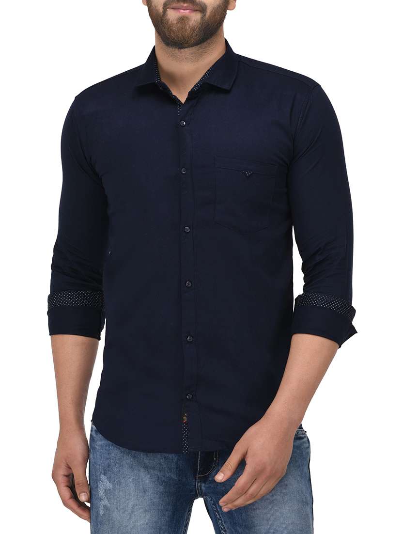 - » navy blue cotton casual shirt